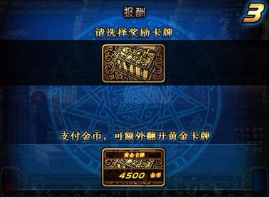通关完成后,可以通过翻取卡片来获得装备物品。并且可以支付一定金币抽取“黄金卡牌”。